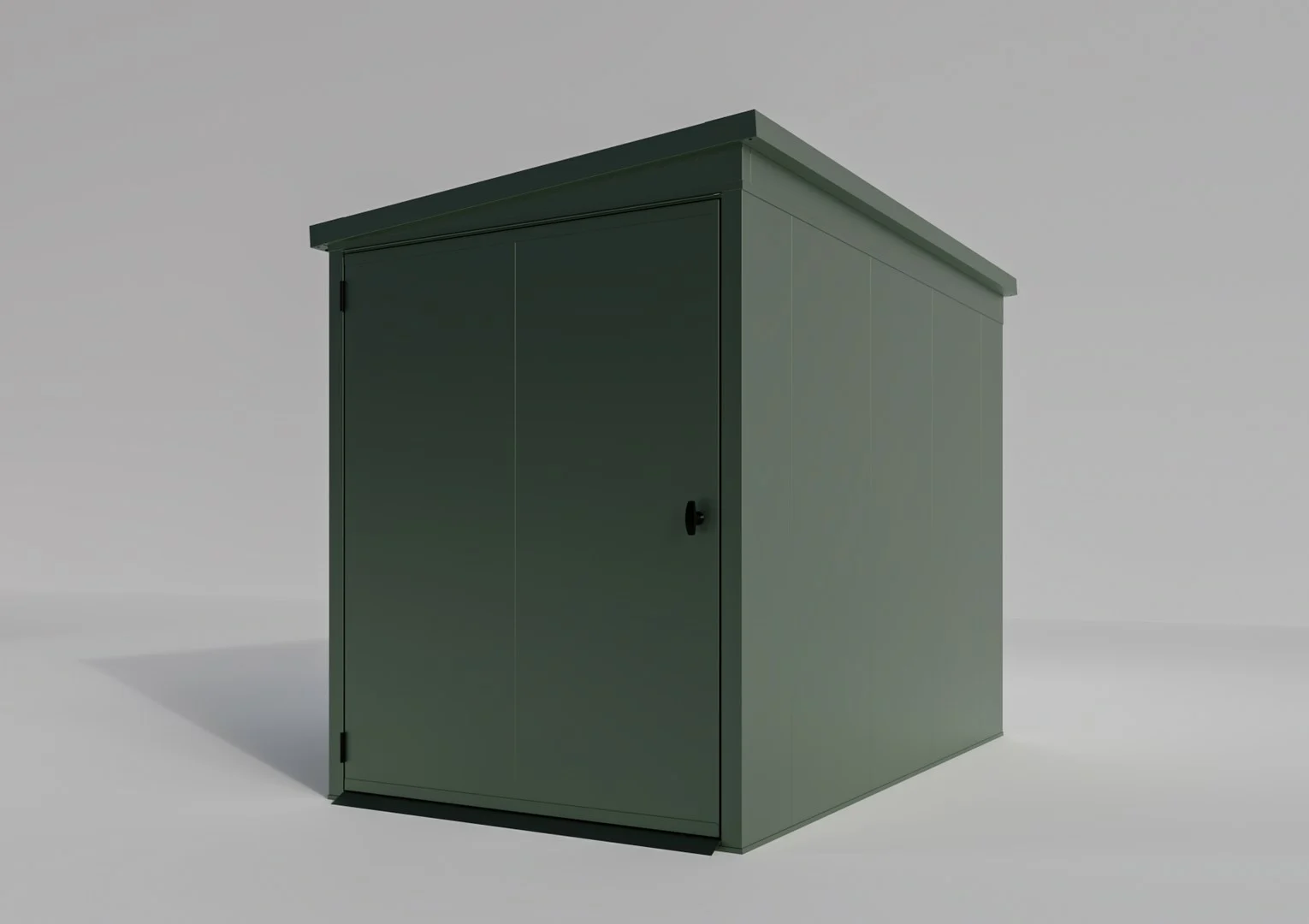 • The shed has a single-leaf door.
